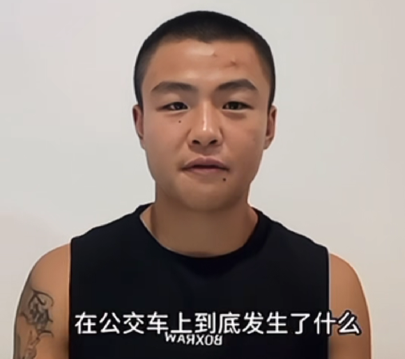 在公交后座,他拦住这群人,妻子跑到公交前方大喊锁门并打电话报警。