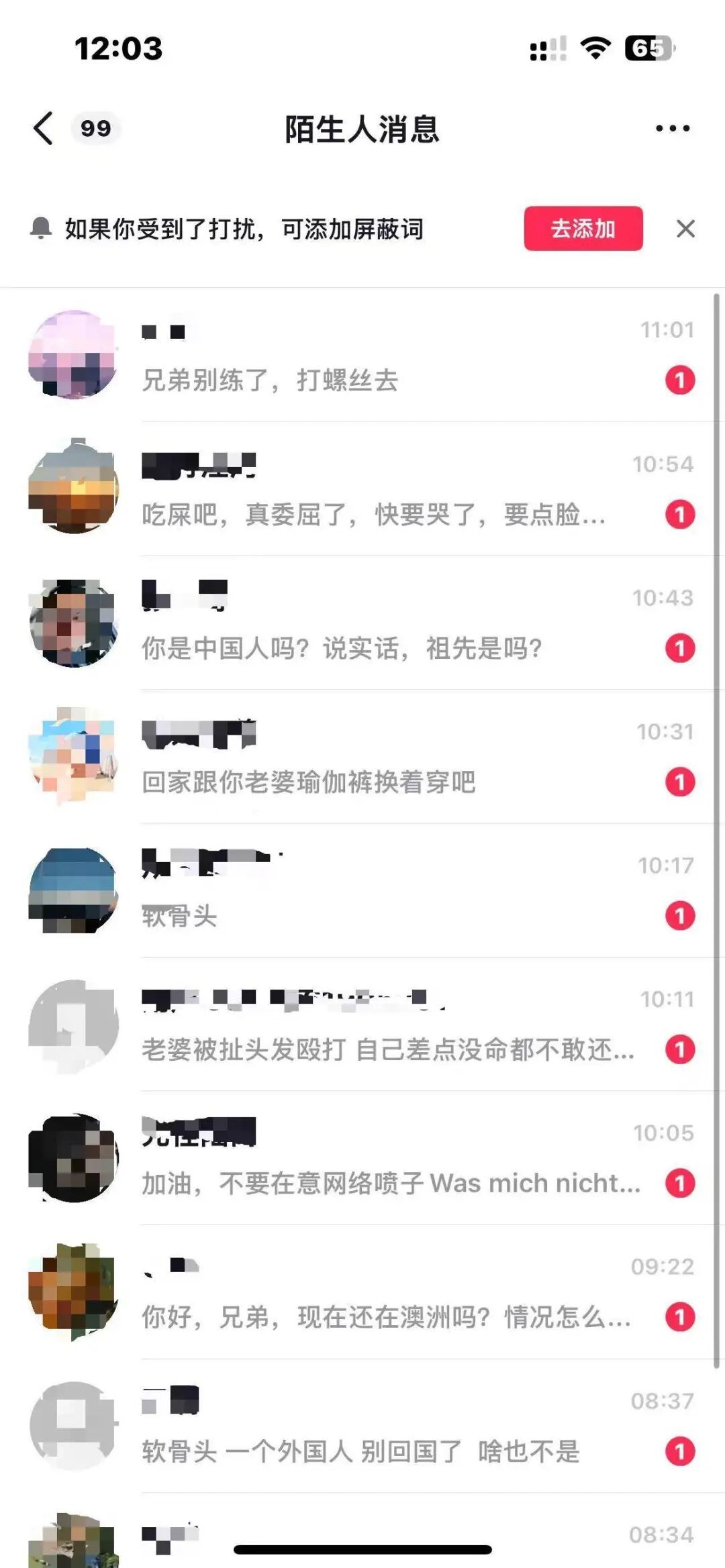 但他没想到自己的做法在国内却遭到了网暴,上千条私信都在辱骂他。